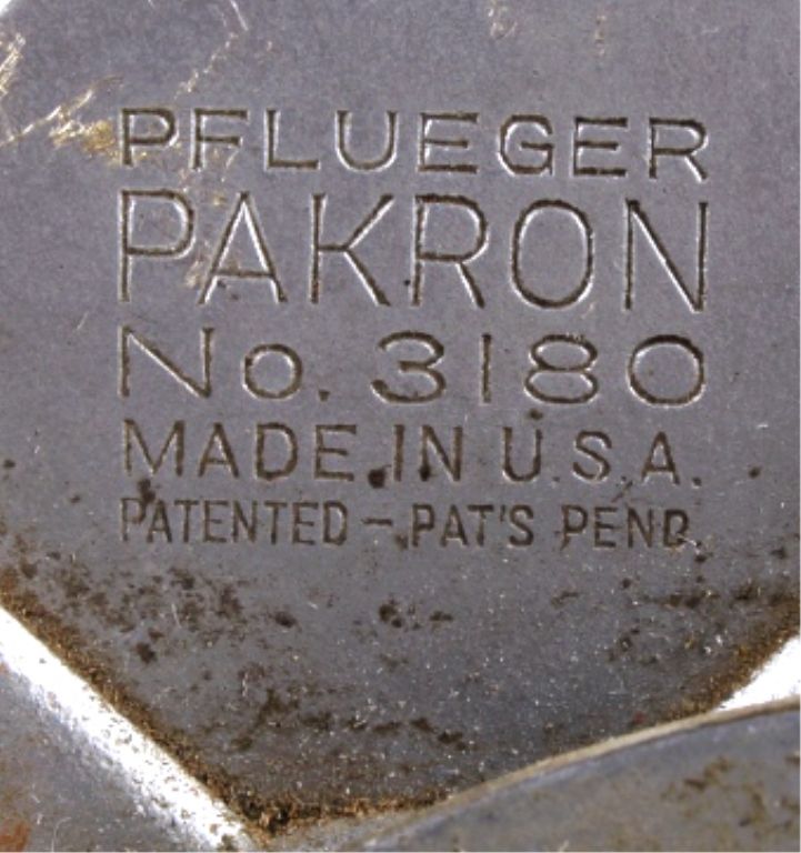 This is an original 1906 Pflueger Reel Model Pakron No. 3180. The reel is in working condition showing the original handle. The good condition reel measures 6.25"x5"