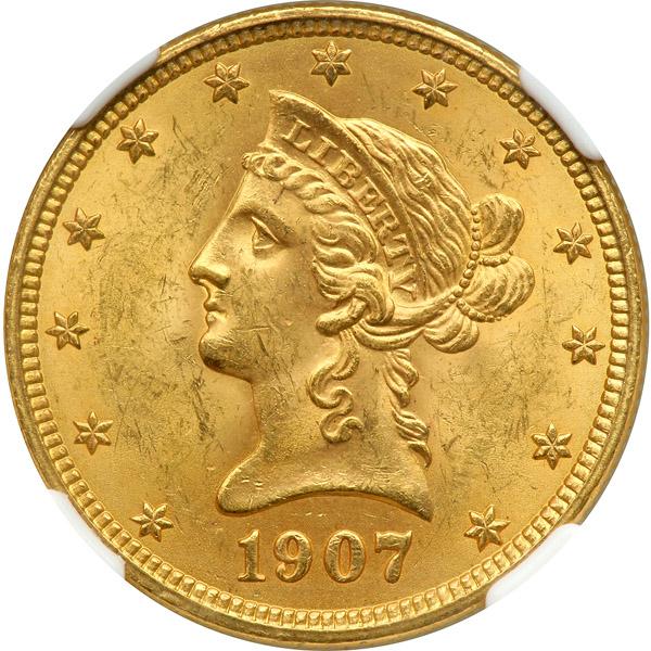 1906-S $10 Liberty. NGC graded MS-62 PQ. Nice natural golden toning on both sides; bright and frosty (PCGS # 8762) .