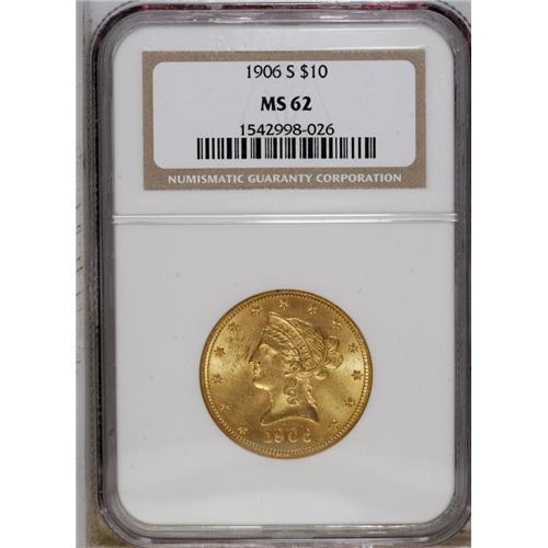 1906-S $10 MS62 NGC. Despite its mintage of 457,000 pi