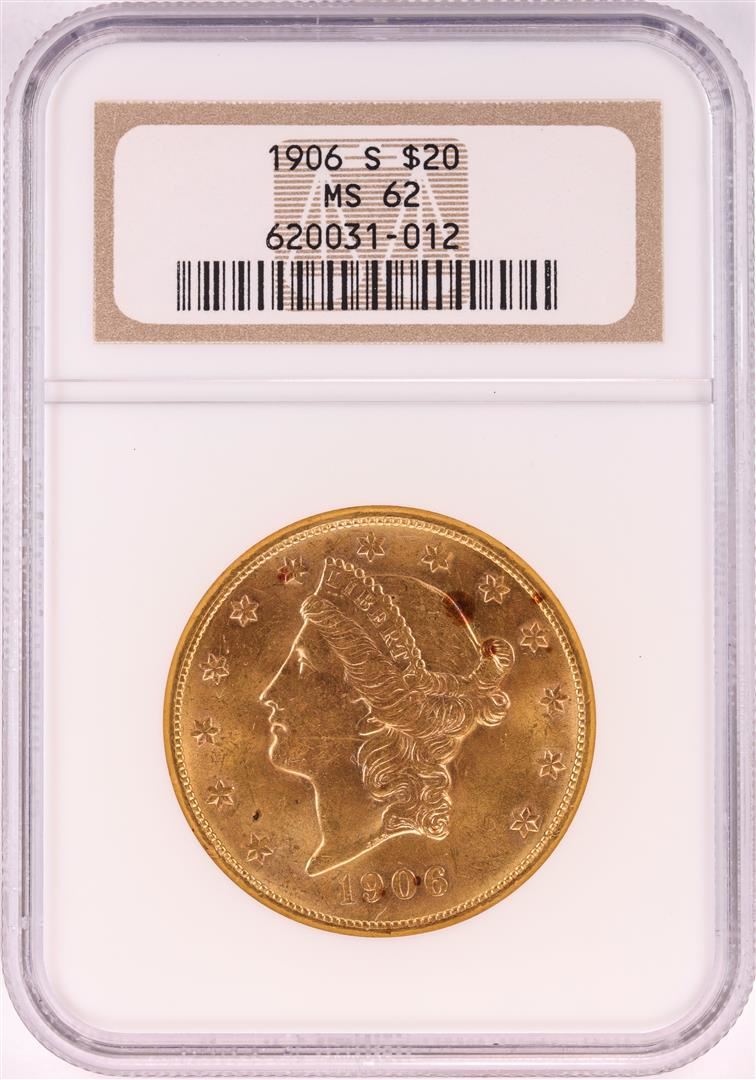 One 1906-S $20 Liberty Head Double Eagle Gold Coin NGC MS62. NGC Certified.