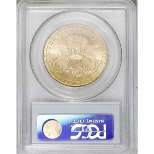 <B>1906-S $20 MS62 PCGS.</B></I> PCGS Population (1385/1162). NGC Census: (1450/670). Mintage: 2,065,750. Numismedia Wsl. Price for NGC/PCGS coin in MS62: $775. (#9051)<BR><BR><B>Coin Engraver:</B> James B. Longacre<BR><BR><b>Shipping:</b> Coins & Currency (<a target="_blank" href="http://www.heritageauctions.com/common/shipping.php">view shipping information</a>)