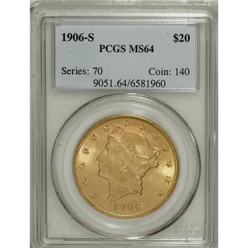 1906-S $20 MS64 PCGS. The 1906-S, with a mintage excee