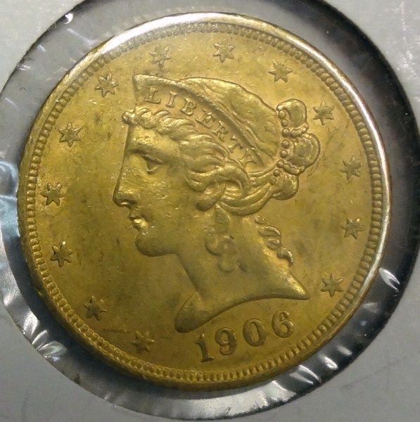 1906-S $5.00 GOLD LIBERTY AU/UNC, ORIGINAL & SCARCE