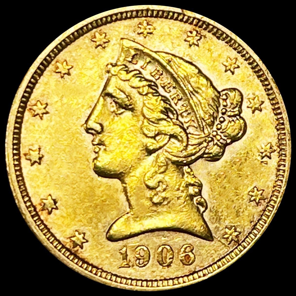1906-S $5 Gold Half Eagle CLOSELY UNCIRCULATED