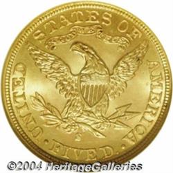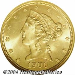 <table><tr><td><table><tr><td>1906-S $5 MS65 NGC. A difficult, late date Coronet Half Eagle that is also popular as the last S-mint of its type. Mint State pieces of any kind are reasonably scarce and the appearance of a Gem puts this piece in very select company. The luster here is satiny in texture and extremely vibrant, with both sides displaying a slight reddish caste with sky-blue highlights. Blemishes are both infrequent and very light. Population: 8 in 65, 2 finer (3/04). <BR><BR><B>Important notice:</B> Heritage usually auctions material at the rate of 200-250 lots per hour. On some occasions eBay Live bid software or the Internet may not be able to keep up with the pace of the auction. We recommend placing a realistic absentee bid now as insurance to avoid disappointment. Occasionally the auctioneer may eliminate or reject an eBay Live bid, and the auctioneer may also reopen a lot after the close of the eBay live bidding (usually because we missed an audience bid), and may reject your bid even if it shows you as the winning bidder. By bidding via eBay Live, you agree that Heritage may award the lot to another bidder at its sole discretion under the circumstances described above or any other reasonable circumstances. Since eBay bids are not shown to us until we open the lot on the floor, we treat those bids just like floor bids. In most cases the floor responds before the eBay bid is presented to us, due to Internet lag time, so for consistency we have made it a policy that floor bids are always considered first over tie eBay live bids. Also please note that all Heritage lots purchased through eBay Live carry a 20% Buyer's Premium. Please make sure you read the Terms and Conditions before you bid. <BR><BR><B>IMPORTANT ANNOUNCEMENT ABOUT RESERVES:</B> Heritage now divulges all reserves on its web site 7 days before every auction. If you want to know whether the reserve on this lot has been met, and if not, what the reserve amount is, please visit this lot page on the HeritageCoin.com web site, or email: bid@HeritageGalleries.com </span></font></td></tr></table></td></tr></table>