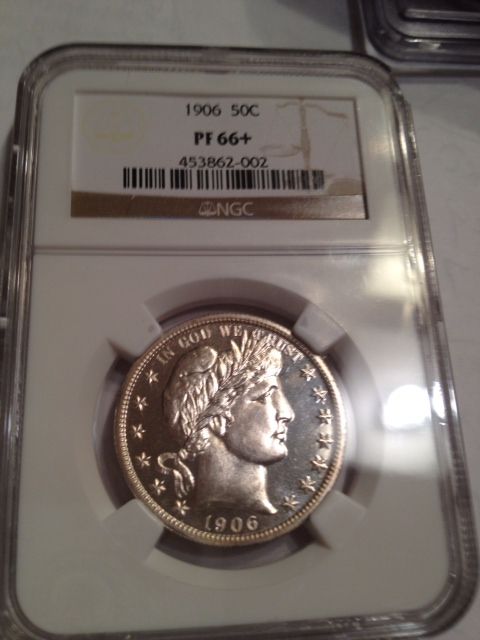 1906 SILVER BARBER HALF DOLLAR NGC MS-66. A PROOF 66 IN THE PCGS GUIDE IS $7500, A PROOF 67 IS $20,000.THIS IS A PROOF 66 PLUS SO EASILR BETWEEN $14,000 AND $16,000