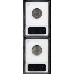 <table><tr><td><TABLE cellSpacing=0 cellPadding=0 width="100%" bgColor=#000000 border=0><TBODY> <TR><TD width="100%"><TABLE cellSpacing=1 cellPadding=3 width="100%" border=0><TBODY><TR><TD width="100%" bgColor=#79735c><FONT face=arial color=#ffffff size=3><B>Description</B> </FONT></TD></TR><TR><TD width="100%" bgColor=#ffffff><FONT face=arial size=2><B>1893 5C AU58 ANACS,</B></I> lightly toned, satiny luster, a few toning flecks; and a <B>1906--Spots Tooled--ANACS, Unc Details, Net MS60,</B></I> strong luster, a few denticles past 3 o'clock on the reverse are pinscratched where an aqua spot persists. (2 Coins) </FONT></TD></TR></TBODY></TABLE></TD></TR></TBODY></TABLE><BR><A name=PricesRealized></A><TABLE cellSpacing=0 cellPadding=0 width="100%" bgColor=#000000 border=0><TBODY><TR><TD width="100%"><TABLE cellSpacing=1 cellPadding=3 width="100%" border=0><TBODY><TR><TD width="100%" bgColor=#79735c><A name=PR><FONT face=arial color=#ffffff size=3><B>Previous Prices from Heritage Auctions</B> </FONT></A></TD></TR><TR><TD bgColor=#f6f6ed><TABLE cellSpacing=0 cellPadding=0 width="100%" border=1><TBODY><TR><TD align=middle width="33%"><B>Date</B></TD><TD align=middle width="33%"><B>Service</B></TD><TD align=middle width="33%"><B>Price</B></TD></TR><TR bgColor=whitesmoke><TD width="33%"><B>07/01/2003</B></TD><TD width="33%">ANACS</TD><TD width="33%">$79.35</TD></TR><TR bgColor=whitesmoke><TD width="33%"><B>11/05/2002</B></TD><TD width="33%">NGC</TD><TD width="33%">$78.20</TD></TR></TBODY></TABLE></TD></TR><TR><TD bgColor=#ffffff><FONT face=arial size=1 ?>PLEASE NOTE: All prices realized reflect the final hammer price PLUS the buyer's premium in auctions that charge a buyer's premium. Each item has a notation at the top of the listing indicating whether that lot included a buyer's premium. Example: A item that sells with a final hammer price of $100 and a 20% buyer's premium will display with a price realized of $120. All information listed is intended to be as accurate as possible, but errors are possible. Please use this guide carefully and inform us of any inaccuracies. </FONT></TD></TR></TBODY></TABLE></TD></TR></TBODY></TABLE><BR><TABLE cellSpacing=0 cellPadding=0 width="100%" bgColor=#000000 border=0><TBODY><TR><TD width="100%"><TABLE cellSpacing=1 cellPadding=3 width="100%" border=0><TBODY><TR><TD width="100%" bgColor=#79735c colSpan=6><FONT face=arial color=#ffffff size=3><B>Price Guide*</B> </FONT></TD></TR><TR bgColor=#f6f6ed><TD align=middle><B>Grade</B> </TD><TD align=middle><B>Coin World<BR>(Trends)</B> </TD><TD align=middle><B>Numismedia<BR>Retail</B> </TD><TD align=middle><B>Numismedia<BR>Wholesale</B> </TD><TD align=middle><B>Coin<BR>Universe</B> </TD><TD align=middle><B>Heritage<BR>Value Index</B> </TD></TR><TR><TD colSpan=6>No Pricing Data Available</TD></TR><TR bgColor=#ffffff><TD colSpan=6><FONT size=1>*All information listed is intended to be as accurate as possible, but errors are possible. No item may be returned or refused based on this information which is provided as a service to our customers. You should contact each pricing source directly to determine the accuracy of this information. </FONT></TD></TR></TBODY></TABLE></TD></TR></TBODY></TABLE><BR><TABLE cellSpacing=0 cellPadding=0 width="100%" bgColor=#000000 border=0><TBODY><TR><TD width="100%"><TABLE cellSpacing=1 cellPadding=3 width="100%" border=0><TBODY><TR><TD width="100%" bgColor=#79735c><FONT face=arial color=#ffffff size=3><B>Population Guide</B> </FONT></TD></TR><TR bgColor=#ffffff><TD align=middle><!-- Begin Output of Population Grid--><TABLE cellSpacing=0 cellPadding=0 width="100%" border=0><TBODY><TR><TD vAlign=center><TABLE cellSpacing=0 width="100%" border=1 cellsadding="3"><TBODY><TR><TD vAlign=center><TABLE cellSpacing=0 cellPadding=3 width="100%" border=1><TBODY><TR><TD vAlign=center align=middle bgColor=#f0f1e8 colSpan=2 <CENTER><FONT face=Arial size=2><B>PCGS Pop </B></FONT><CENTER></CENTER></TD><TD vAlign=center align=middle bgColor=#f0f1e8 colSpan=2><CENTER><FONT face=Arial size=2><B>NGC Pop</B></CENTER></FONT></TD></TR><TR><TD vAlign=center><FONT face=Arial size=2>(58)</FONT> </TD><TD vAlign=center align=right><FONT face=Arial size=2>8</FONT> </TD><TD vAlign=center><FONT face=Arial size=2>(58)</FONT> </TD><TD vAlign=center align=right><FONT face=Arial size=2>1</FONT> </TD></TR><TR><TD vAlign=center><FONT face=Arial size=2>(>58)</FONT> </TD><TD vAlign=center align=right><FONT face=Arial size=2>324</FONT> </TD><TD vAlign=center><FONT face=Arial size=2>(>58)</FONT> </TD><TD vAlign=center align=right><FONT face=Arial size=2>254</FONT> </TD></TR></TBODY></TABLE></TD></TR></TBODY></TABLE></TD></TR></TBODY></TABLE><!-- End Output of Population Grid--></TD></TR></TBODY></TABLE></TD></TR></TBODY></TABLE><BR><TABLE cellSpacing=0 cellPadding=0 width="100%" bgColor=#000000 border=0><TBODY><TR> 2 Coins Important notice: Heritage usually auctions material at the rate of 200-250 lots per hour. On some occasions eBay Live bid software or the Internet may not be able to keep up with the pace of the auction. We recommend placing a realistic absentee bid now as insurance to avoid disappointment. Occasionally the auctioneer may eliminate or reject an eBay Live bid, and the auctioneer may also reopen a lot after the close of the eBay live bidding (usually because we missed an audience bid), and may reject your bid even if it shows you as the winning bidder. By bidding via eBay Live, you agree that Heritage may award the lot to another bidder at its sole discretion under the circumstances described above or any other reasonable circumstances. Also please note that all Heritage lots purchased through eBay Live carry a 20% Buyer's Premium. Please make sure you read the Terms and Conditions before you bid.</TD></TR></TBODY></TABLE></TD></TR></TBODY></TABLE>