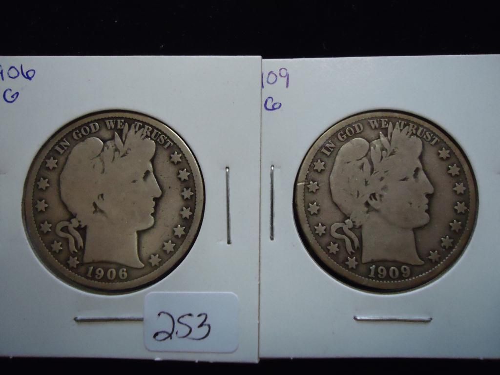 1906 VG & 09 (VERY GOOD) BARBER HALF DOLLARS
