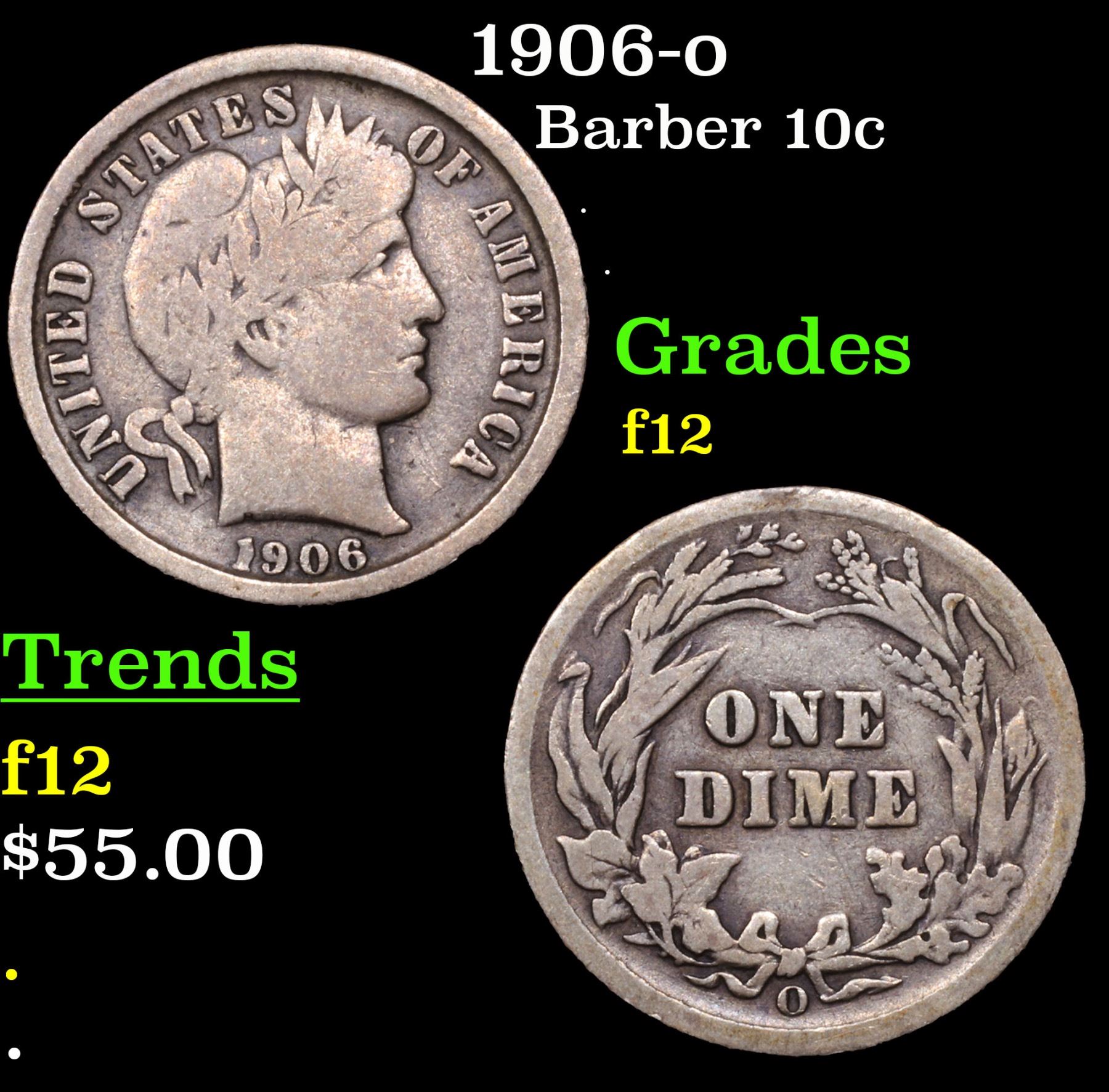 1906-o Barber Dime 10c Grades f, fine