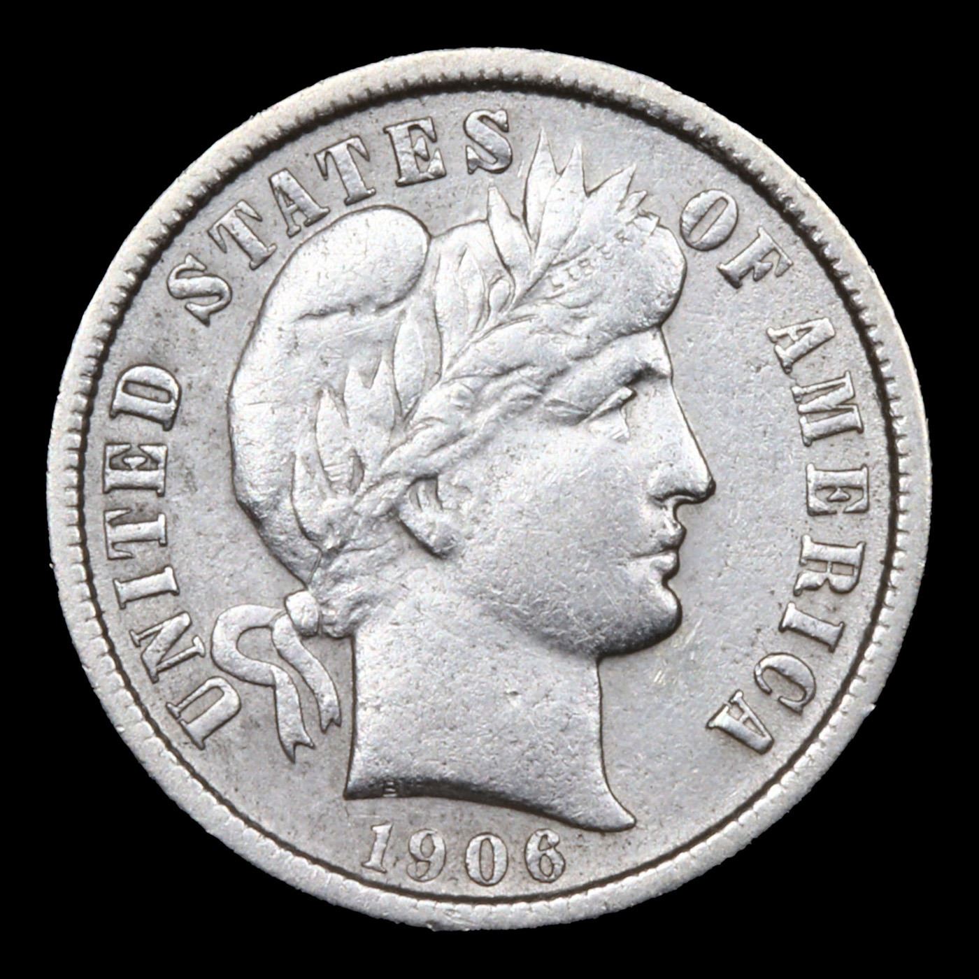 1906-p Barber Dime 10c Grades AU Details.