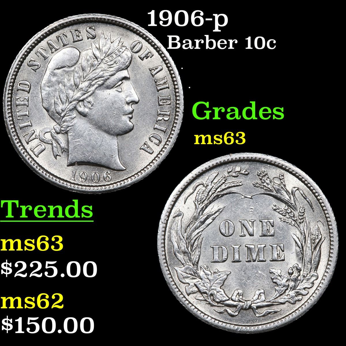 1906-p . . Barber Dime 10c Grades Select Unc.