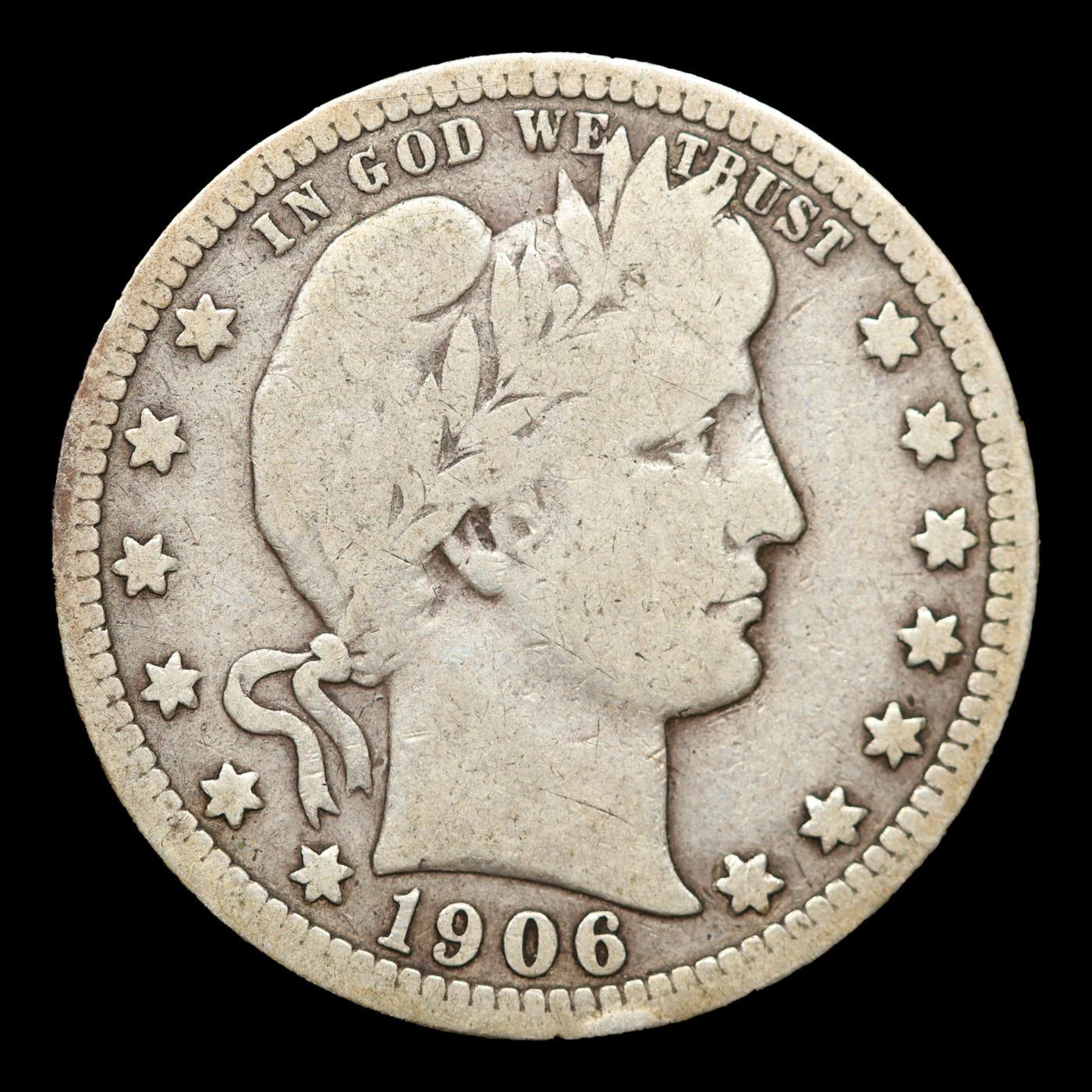 1906-p Barber Quarter 25c Grades f+.
