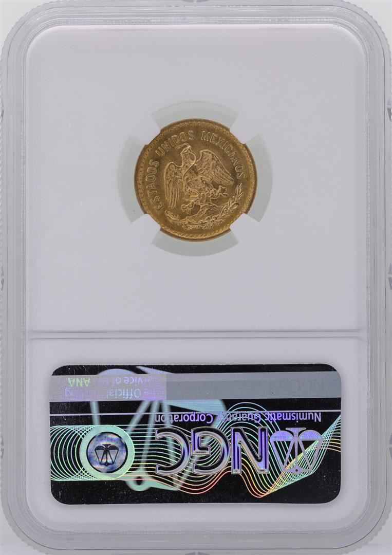 One 1906M Mexico 5 Pesos Gold Coin NGC MS62. NGC Certified.