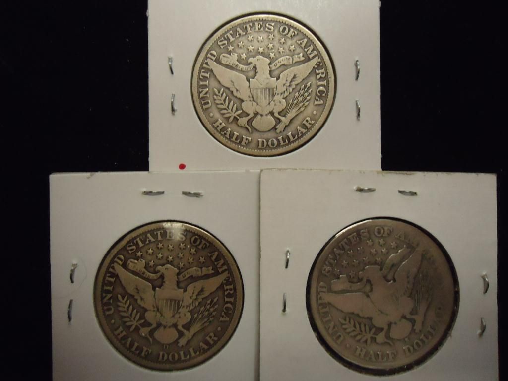 1907,08-D & 09-S BARBER HALF DOLLARS ALL VG'S