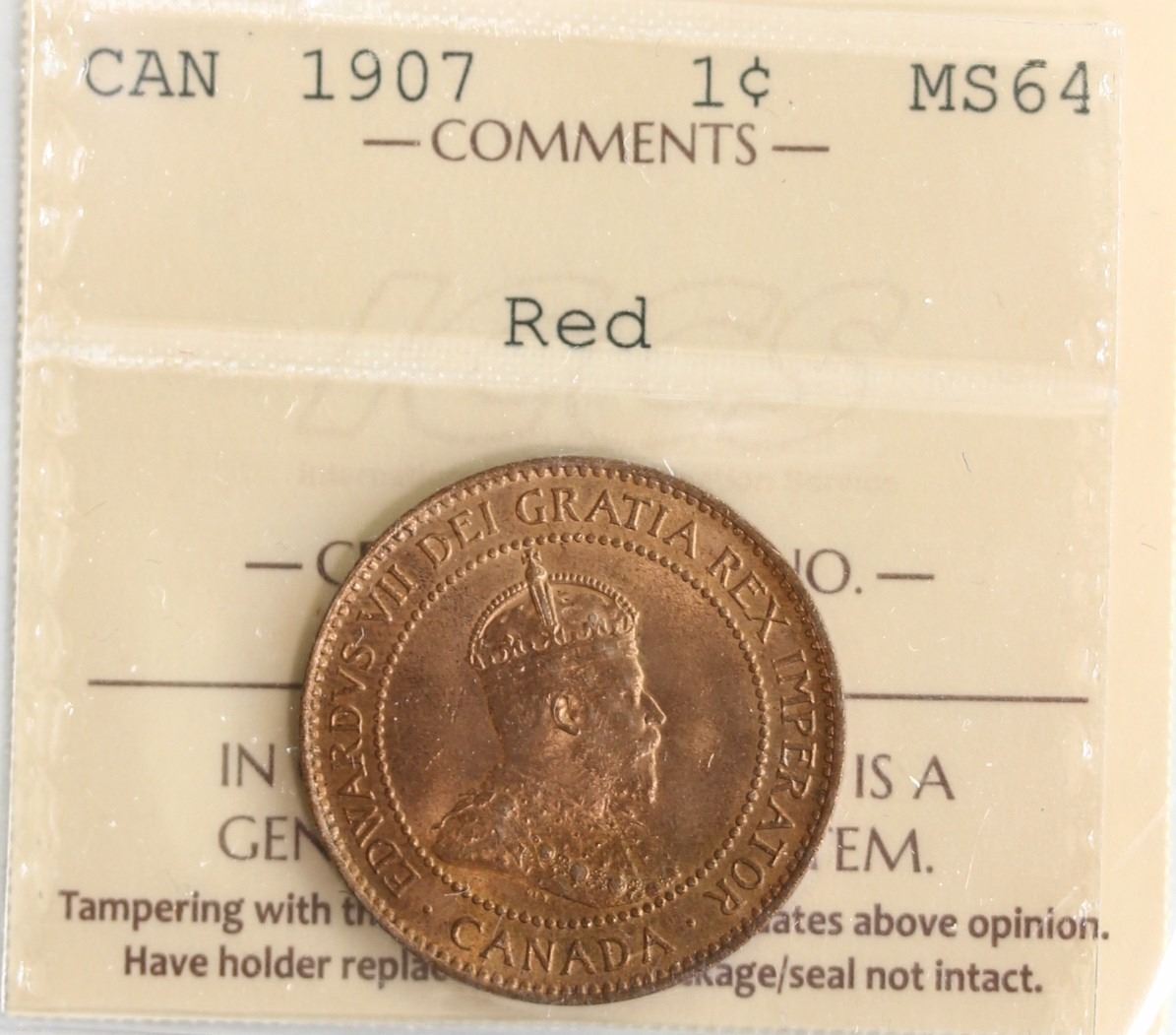 1907 1¢ ICCS Very Choice Mint State-64 85% Red