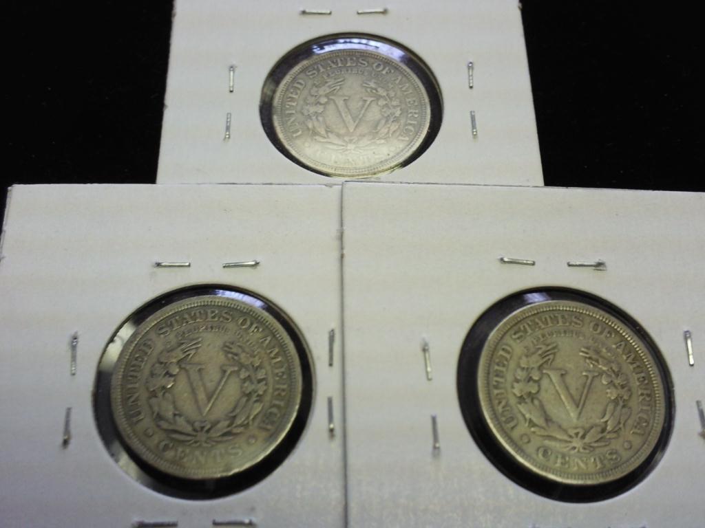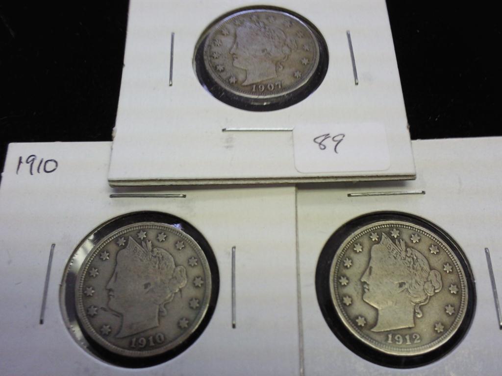 1907, 10 & 12 LIBERTY "V" NICKELS (ALL FINE +)