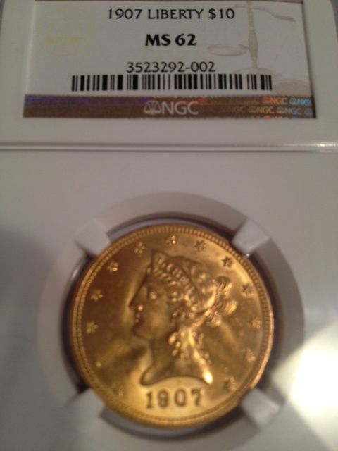 1907 $10 GOLD LIBERTY, NGC MS-62