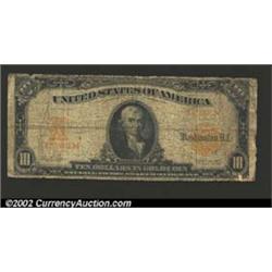1907 $10 Gold Certificate, Fr-1171, Good. A low grade but fully intact Large Size Gold Note.