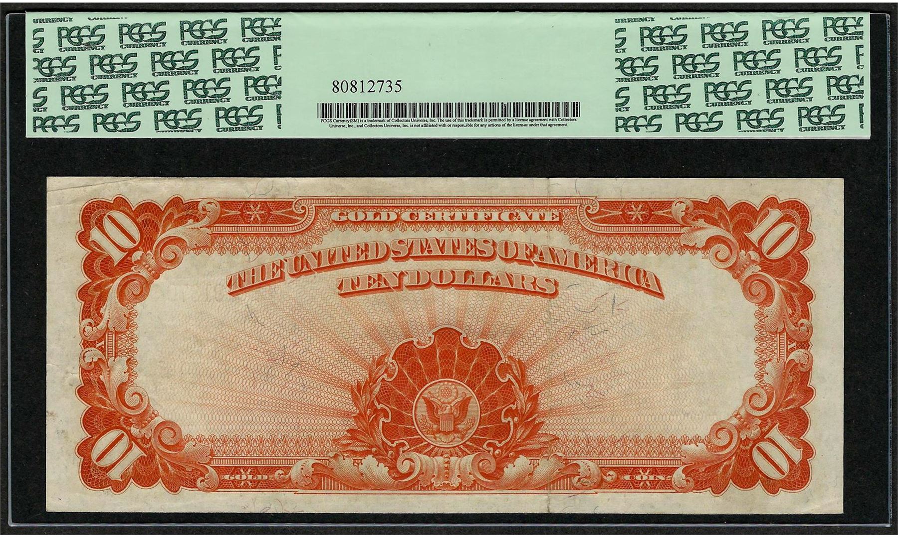 One 1907 $10 Gold Certificate Note Fr.1172 PCGS About New 53PPQ. PCGS Graded.