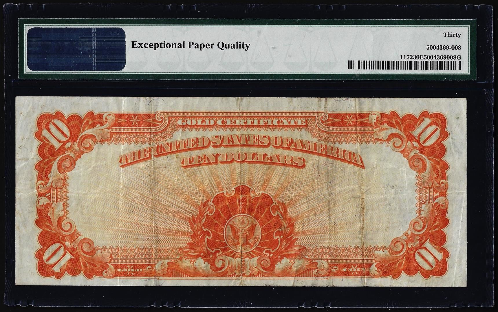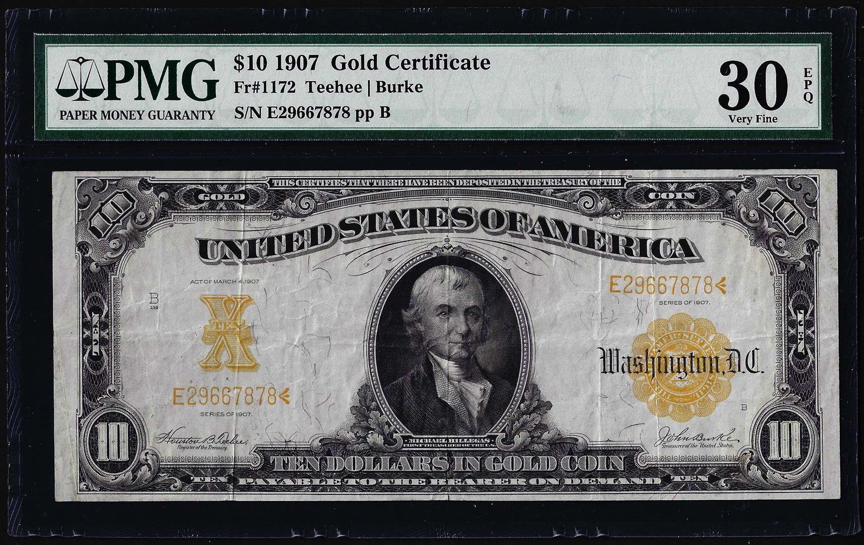One 1907 $10 Gold Certificate Note Fr.1172 PMG Very Fine 30EPQ. PMG Certified.