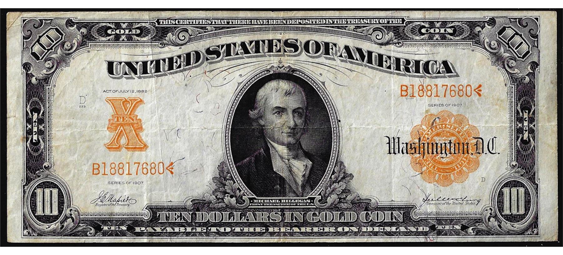One 1907 $10 Gold Certificate Note.