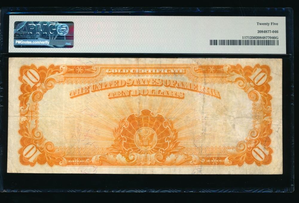One 1907 $10 Gold Certificate PMG 25.