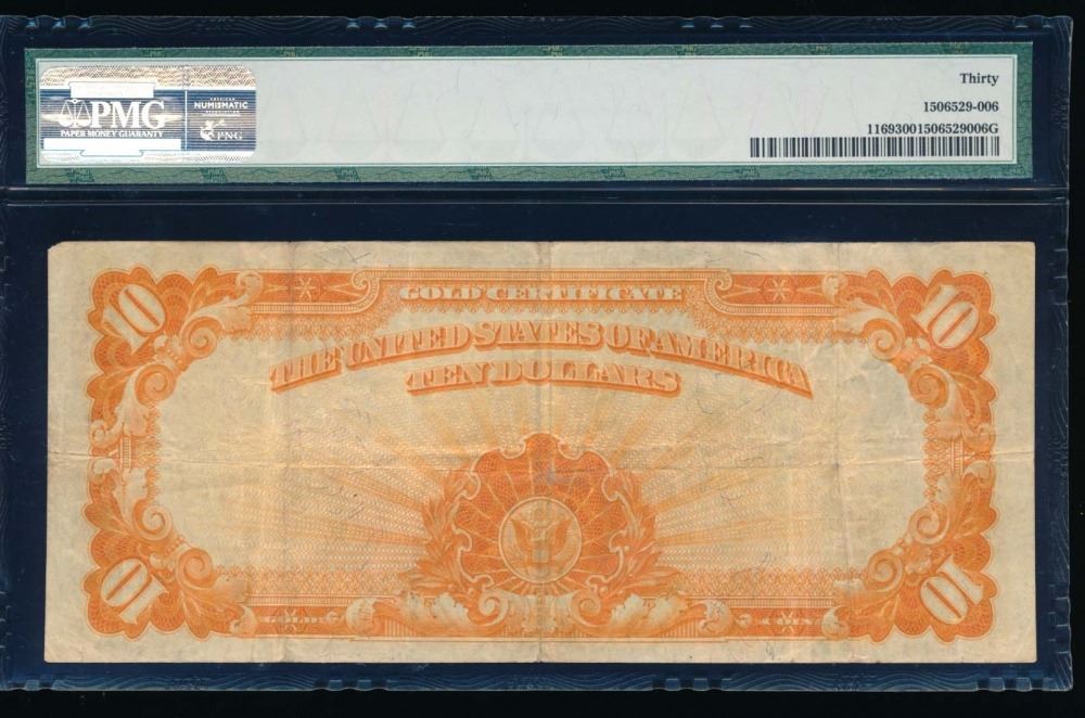 One 1907 $10 Gold Certificate PMG 30.
