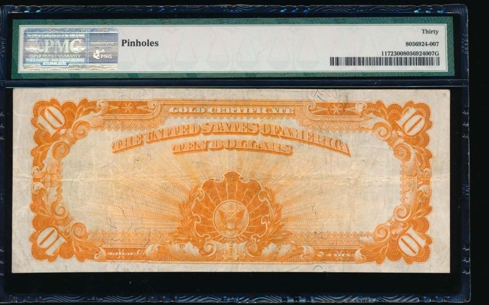 One 1907 $10 Gold Certificate PMG 30.