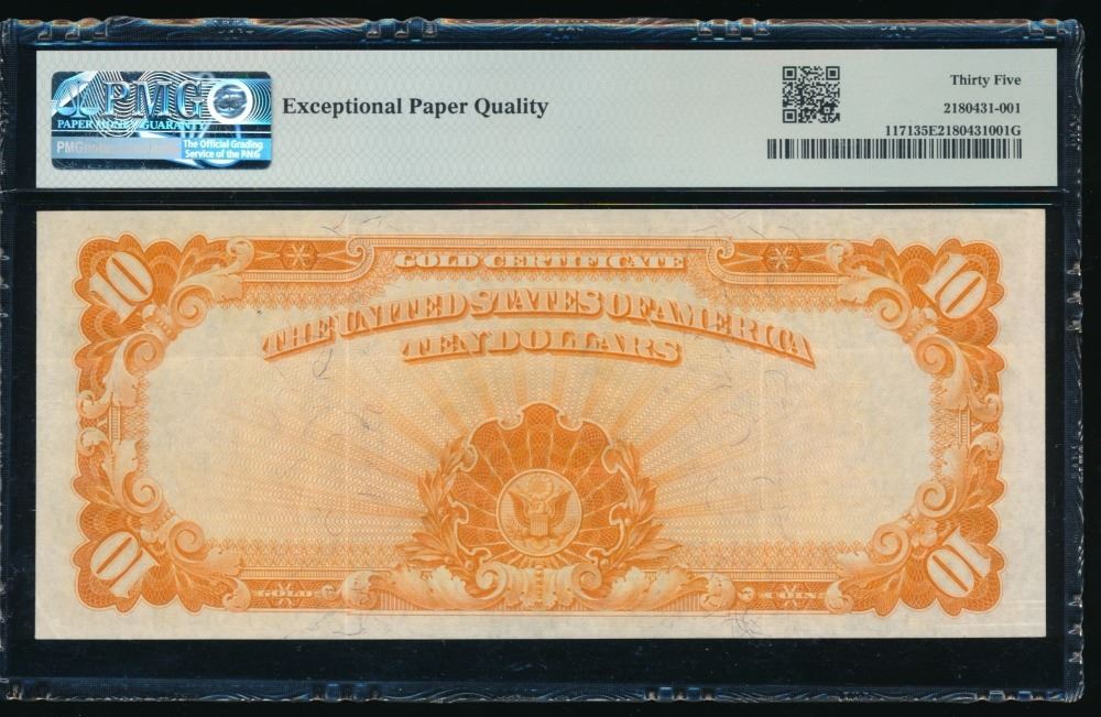 One 1907 $10 Gold Certificate PMG 35EPQ.