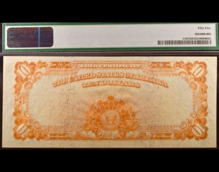 One 1907 $10 Gold Certificate PMG 55.