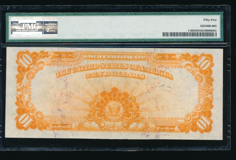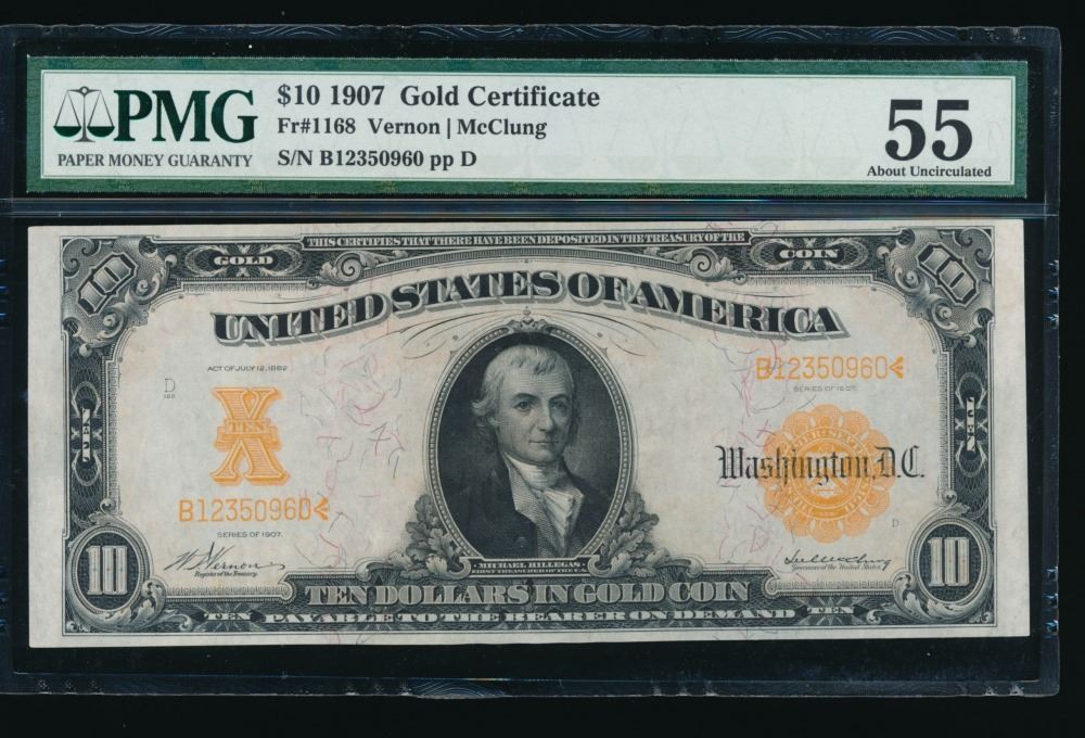 One 1907 $10 Gold Certificate PMG 55.