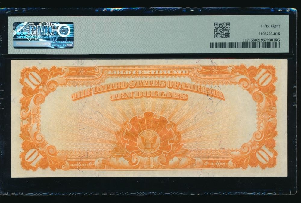 One 1907 $10 Gold Certificate PMG 58.