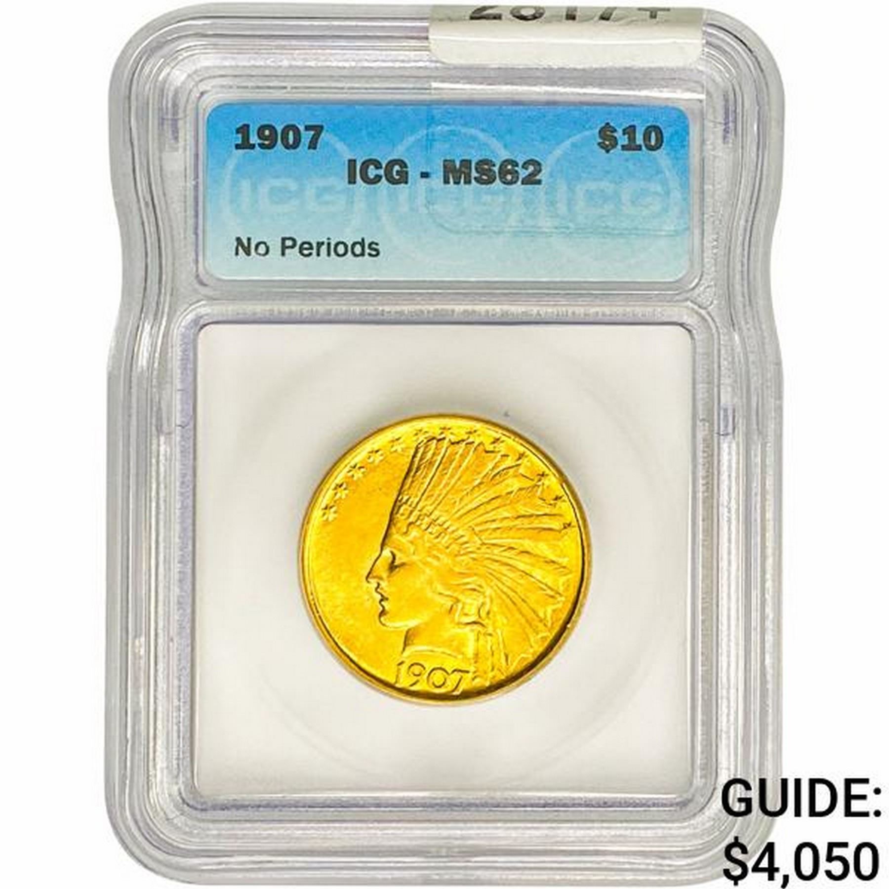 1907 $10 Gold Eagle ICG MS62 No Periods