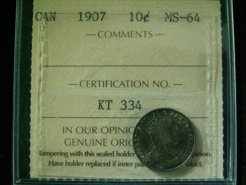 1907 10¢ ICCS MS64PQ. Intense autumn shades over full underlying luster.