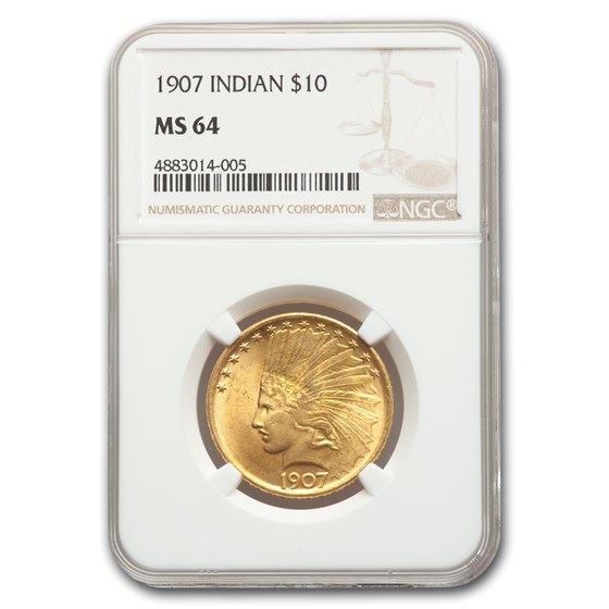 One piece 1907 $10 Indian Gold Eagle MS-64 NGC