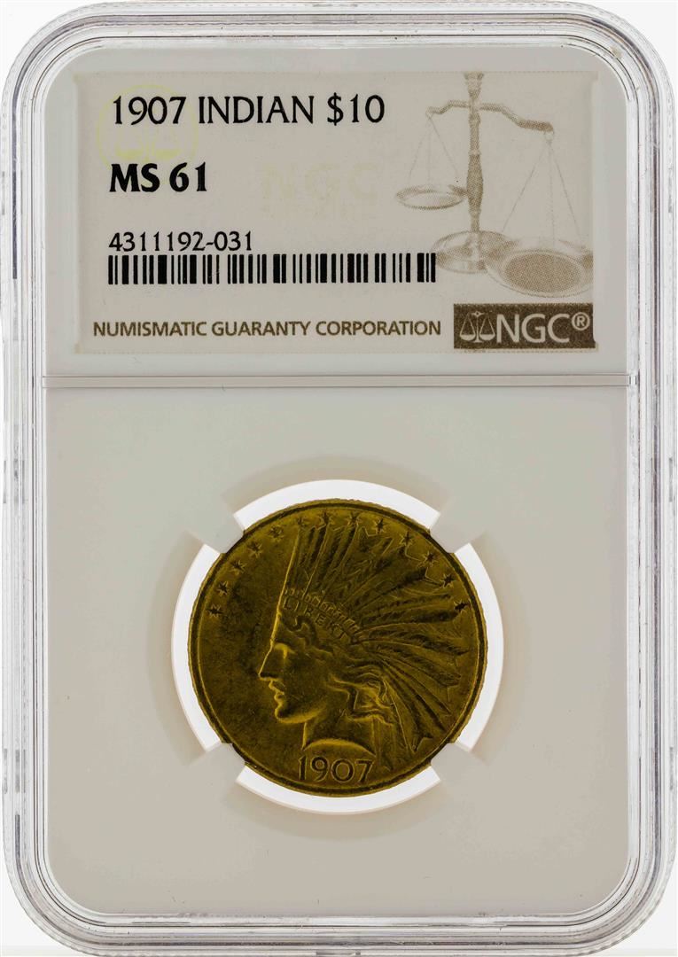 One 1907 $10 Indian Head Eagle Gold Coin NGC MS61. NGC Certified.