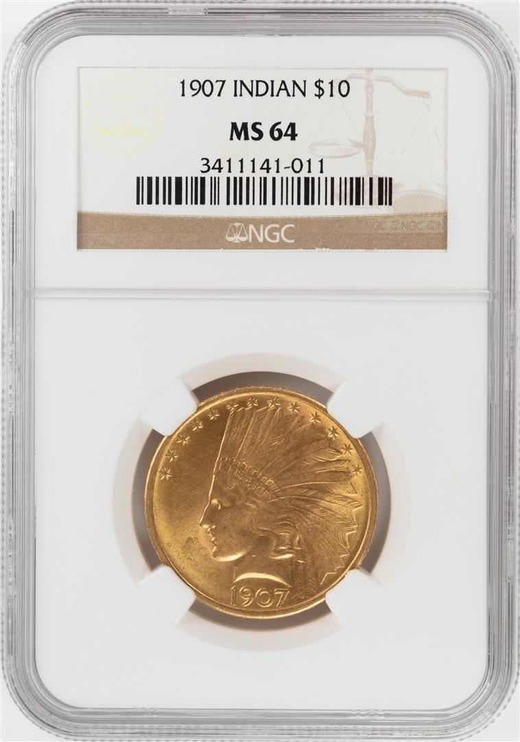 One 1907 $10 Indian Head Eagle Gold Coin NGC MS64. NGC Certified.