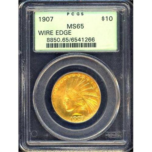 1907 $10 Indian. Wire Edge, Periods PCGS MS65