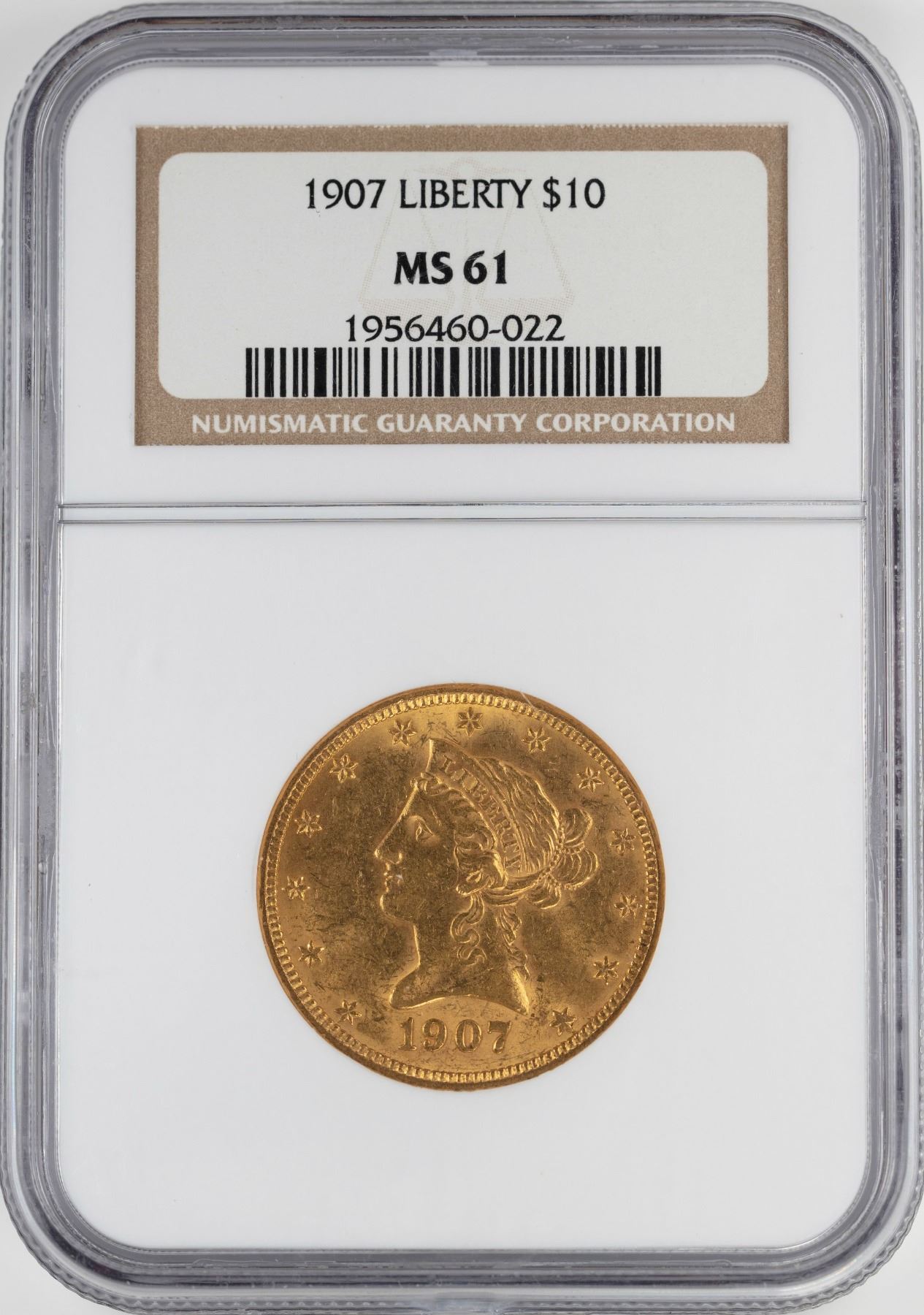 One 1907 $10 Liberty Head Eagle Gold Coin NGC MS61.