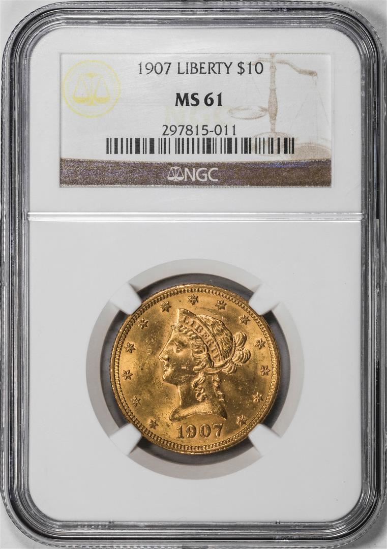 One 1907 $10 Liberty Head Eagle Gold Coin NGC MS61. NGC Certified.