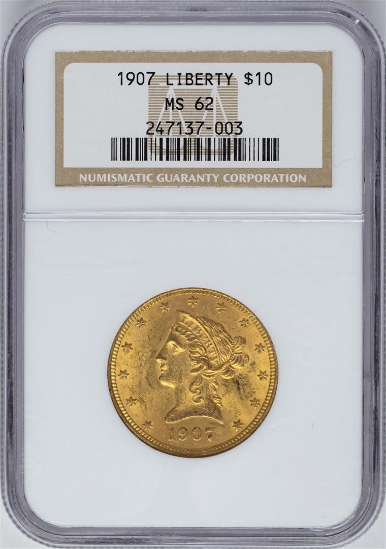 One 1907 $10 Liberty Head Eagle Gold Coin NGC MS62. NGC Certified.