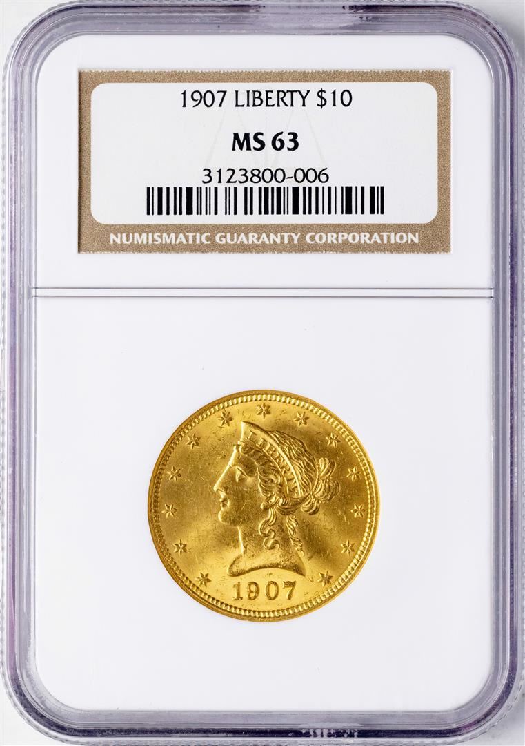 One 1907 $10 Liberty Head Eagle Gold Coin NGC MS63. NGC Certified.