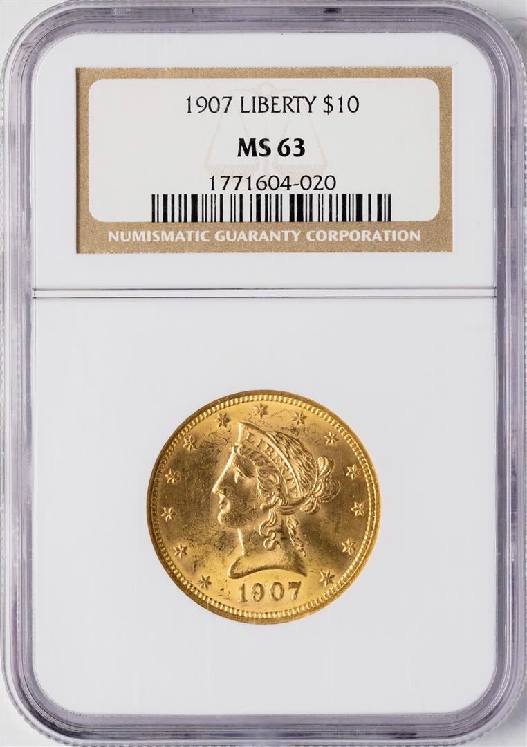 One 1907 $10 Liberty Head Eagle Gold Coin NGC MS63. NGC Certified.