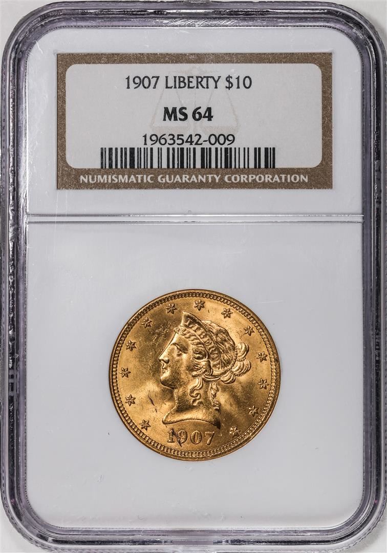 One 1907 $10 Liberty Head Eagle Gold Coin NGC MS64. NGC Certified.
