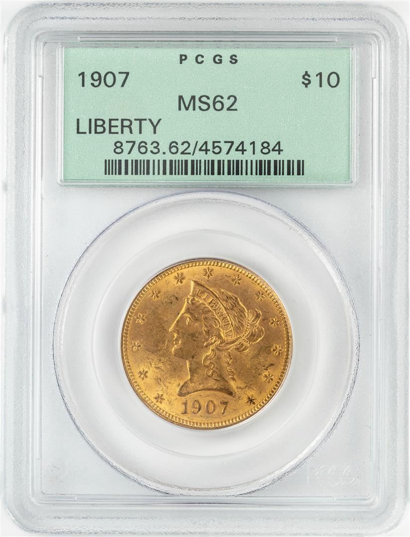 One 1907 $10 Liberty Head Eagle Gold Coin PCGS MS62. PCGS Graded.