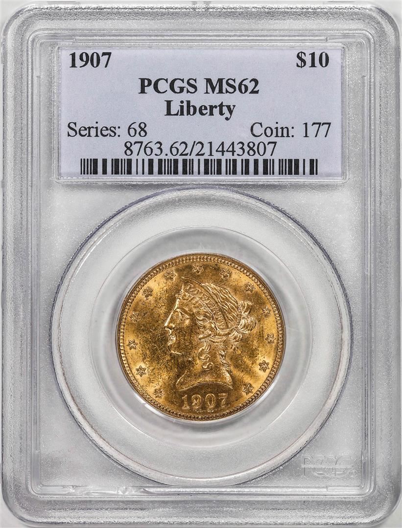One 1907 $10 Liberty Head Eagle Gold Coin PCGS MS62. PCGS Graded.