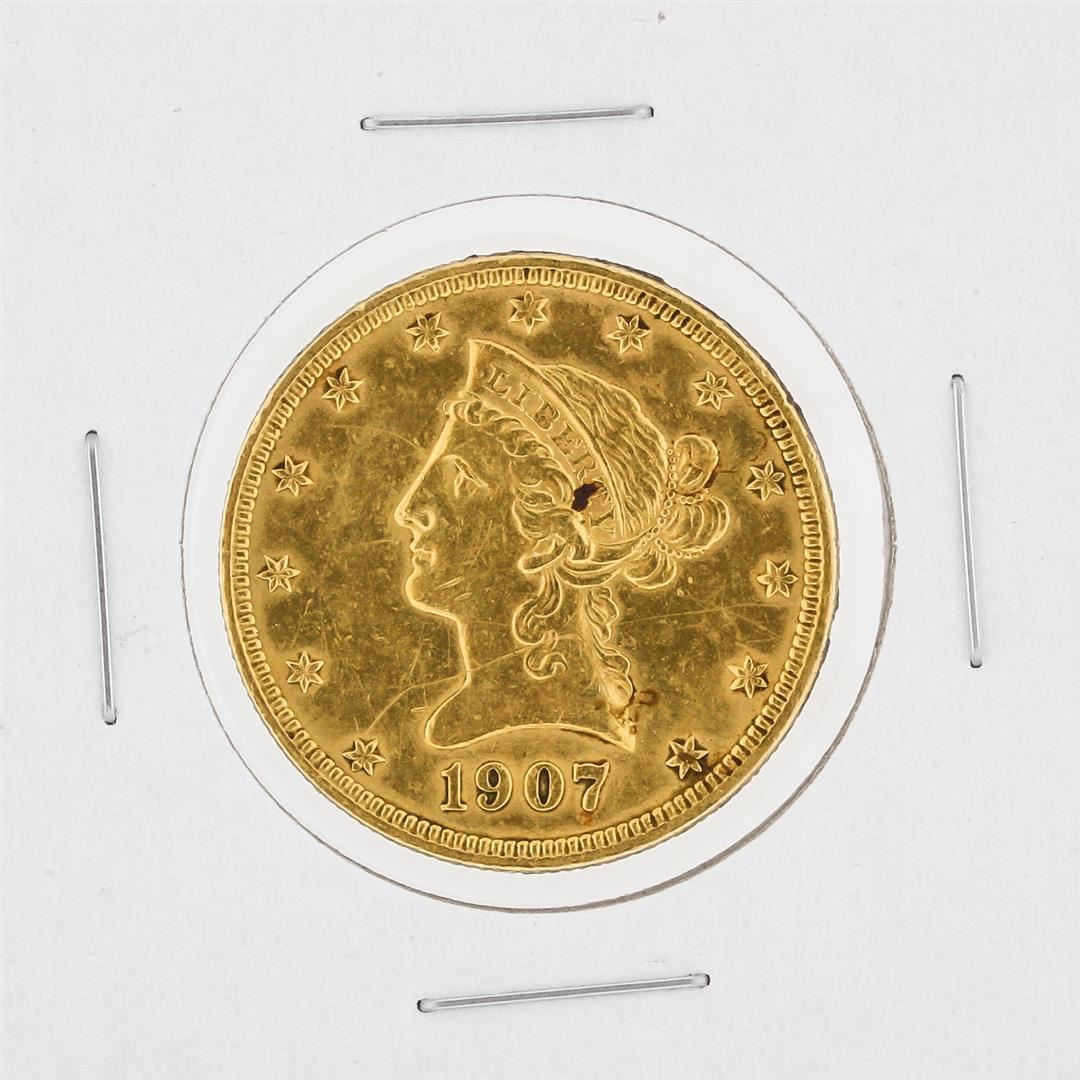 One 1907 $10 Liberty Head Eagle Gold Coin.