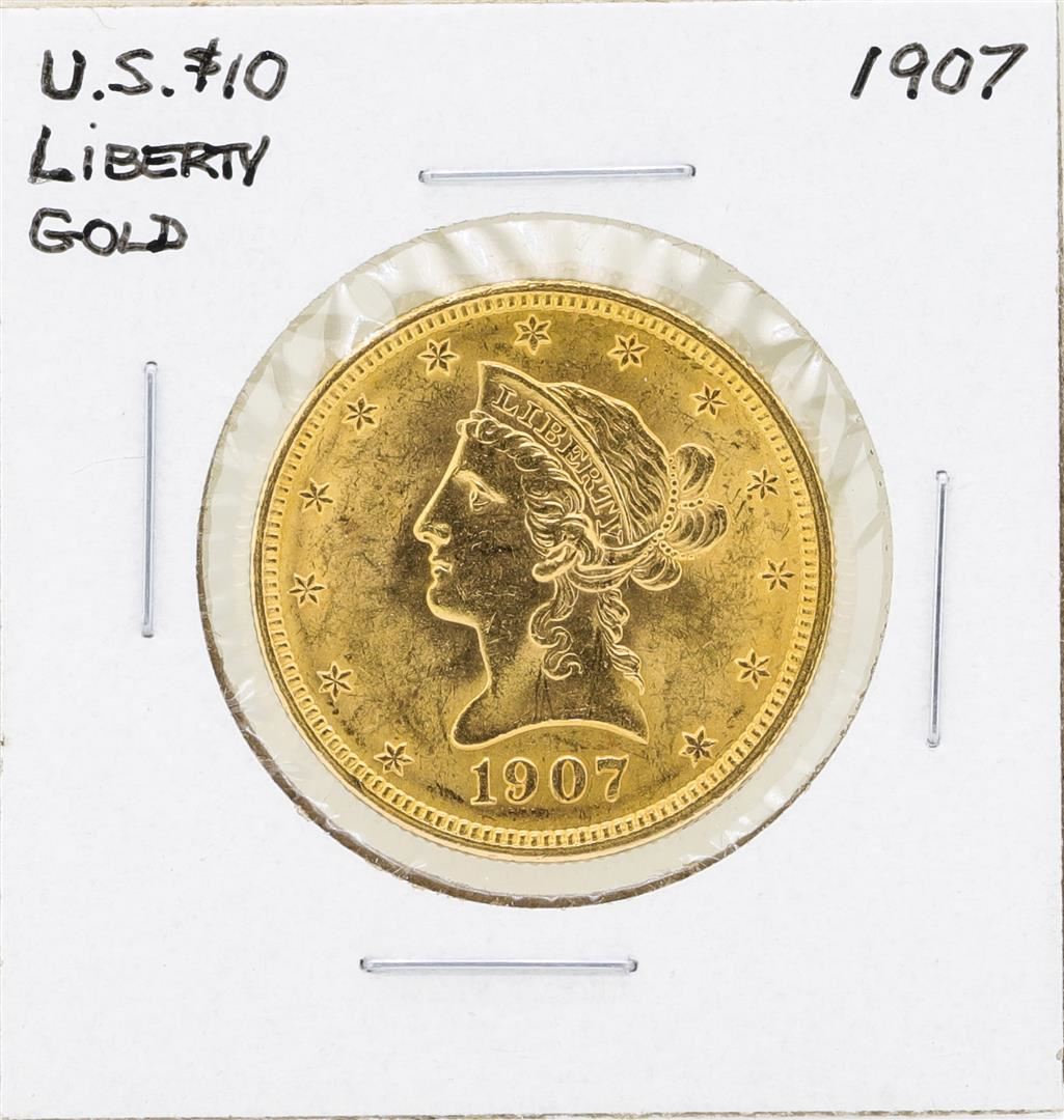 One 1907 $10 Liberty Head Eagle Gold Coin.