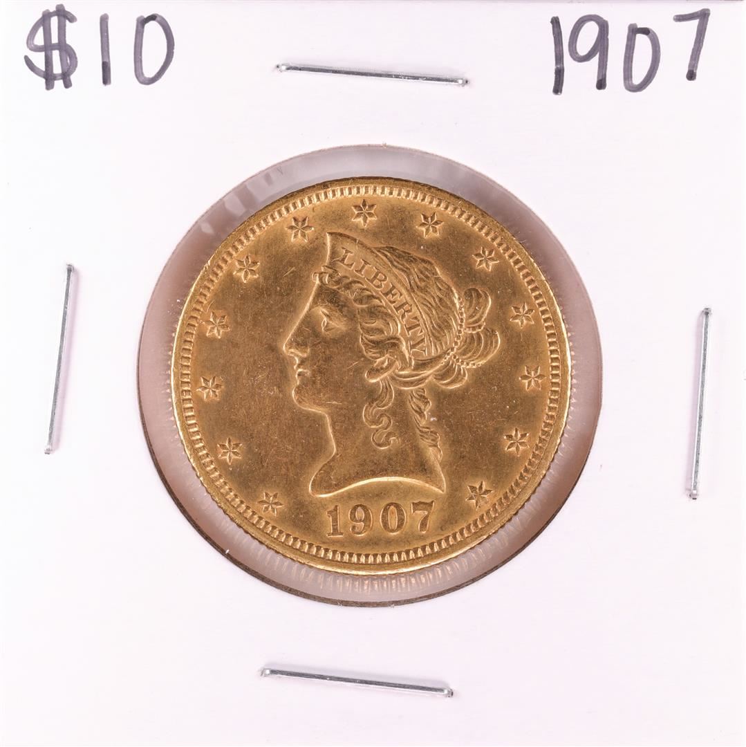 One 1907 $10 Liberty Head Eagle Gold Coin.