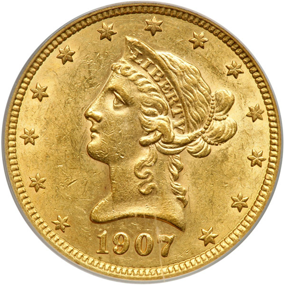 1907 $10 Liberty. PCGS graded AU-58 (PCGS # 8763) .